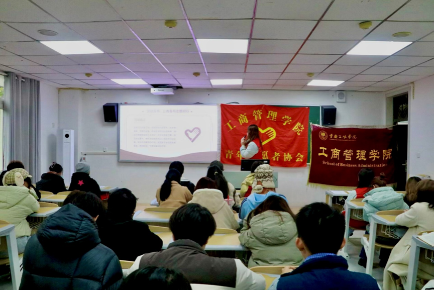 为引导青年以志愿行动传递真善美,助力其树立正确价值观。2025年12月4日,工商管理举办了“志愿之光:真善美的接力”活动。在活动过程中,志愿者彭思语借助PPT,介绍了国家对志愿服务的指导方向与期待、志愿精神等内容。最后通过知识问答环节,增强了同学们的参与感,加深了他们对志愿服务的认知,增强了青年群体的志愿服务意识。