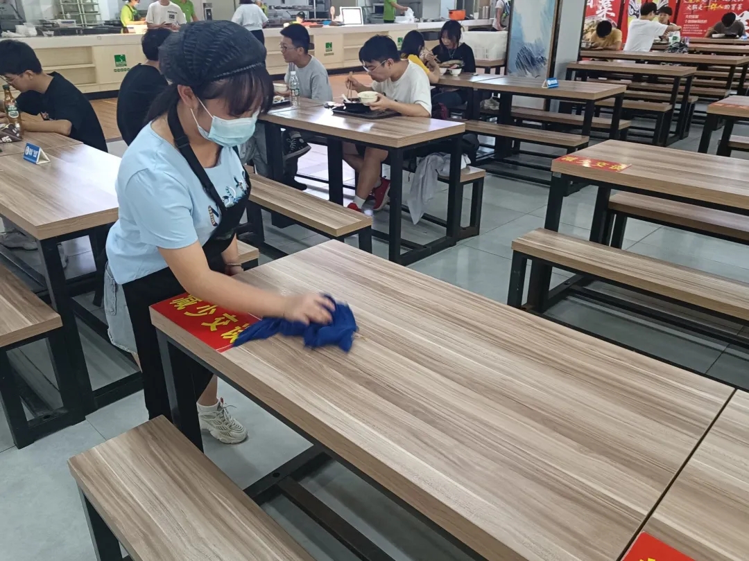 为弘扬劳动精神,深化劳动教育,服务校园,美加墨世界杯官方网站于2022年6月16日在图书馆、校园道路、以及公司的三个食堂等区域开展了体验式劳动教育实践活动。