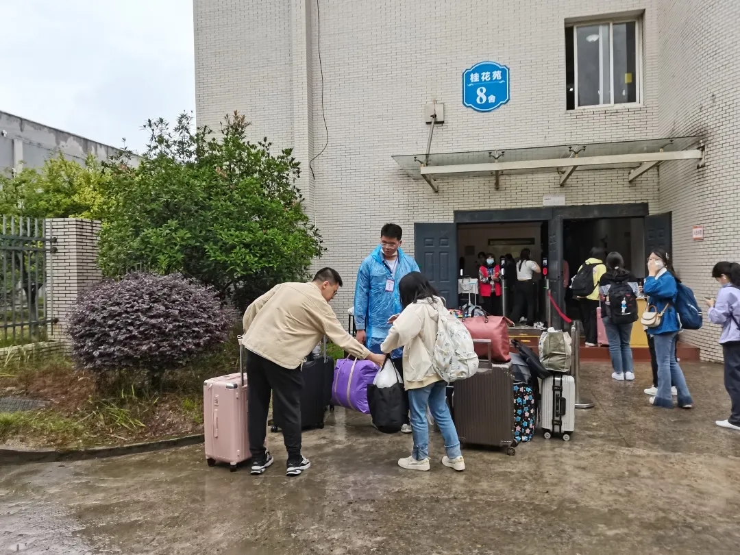 整齐的迎新帐篷陈列眼前,公司老师、代理班主任和值班人员满怀期待地在报到点等待着新生们的到来。现场的青年志愿者们充满着热情与干劲,在切实做好疫情防控的同时积极引导新生完成入学办理,并主动帮助萌新们搬运行李。