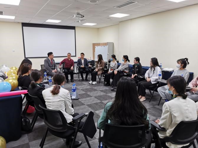 于开红副经理、唐卫老师在两家酒店都与公司酒店管理班的实习员工进行了座谈。座谈会上,于经理代表公司向所有实习生表示了亲切慰问。随后,实习生每人围绕工作内容、实习收获、实习感受等积极展开交流。张学豪、钟声等同学分享了个人实习前后心理变化,表示通过实习提升了自己的抗压能力以及环境适应能力。毛云莉、段岚等同学分享了对酒店工作以及酒店行业的深刻认识。同学们各抒己见,氛围活跃。