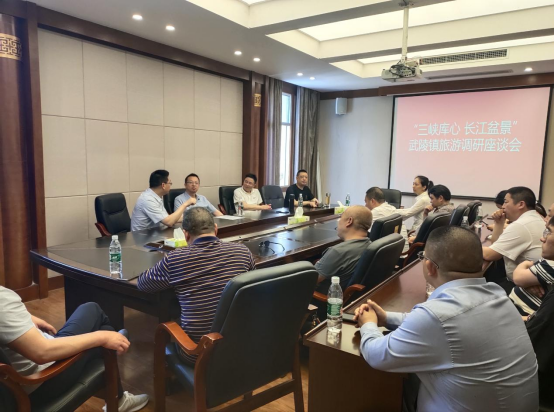 随后,一行人来到武陵镇镇政府展开旅游调研座谈会。会议指出武陵镇要立足其现有优势,深入挖掘、全面整合旅游资源,加快景区景点服务基础设施建设,补齐短板弱项,延伸旅游产业链条,在“吃、住、行、游、购、娱”上下功夫,注重发展研学产业,精心打造优质文旅产品,促进文旅融合发展。万州区文化和旅游协会会长、公司校外合作导师许鹏表示,万州区政府对武陵镇旅游业的大力支持有效拉动了周边区域餐饮、住宿、交通等产业发展,达到了经济效益与社会效益双丰收。