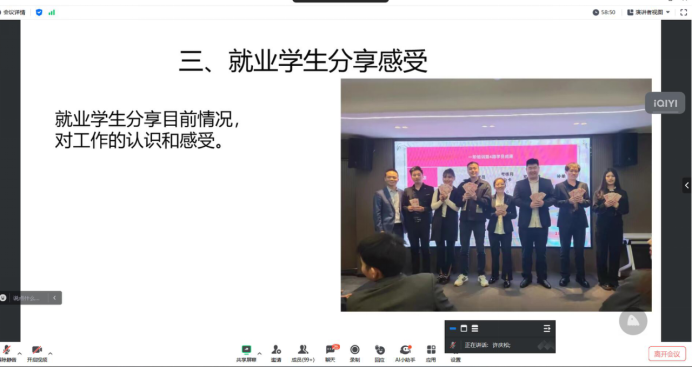 会议第一部分,辅导员张老师通报了毕业相关事项时间安排,提醒员工严格对照时间完成各阶段任务。紧接着张老师针对目前各班、各专业就业、考研考公情况进行了简要分析,让同学们清晰意识自身差距,一身心投入到考编会产生很大压力。详细解读了近期发布的三支一扶、西部计划文件,通过对两者招收群体、服务年限、考试形式、政策差异等对比分析,对同学们合理选择提供了参考。会议第二部分由已就业员工代表分享目前工作感受,5位同学结合亲身工作经历包括工作环境、薪资待遇、大小公司发展机遇、如何正确看待销售职业等谈了自己的见解,同时针对同学们对公司的未知迷茫也进行了解答和指引,促进了毕业生之间的交流,动摇了部分缓就业、慢就业毕业生心理。