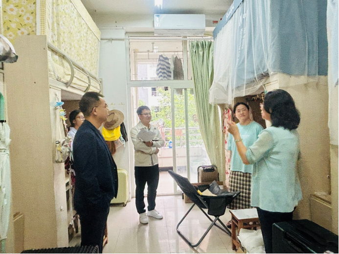 为进一步关心毕业生思想动态及学习生活情况,有效助推公司就业工作,5月14日下午,公司党总支书记刘亚兰、副书记李中春带领毕业班辅导员深入走访毕业生寝室。