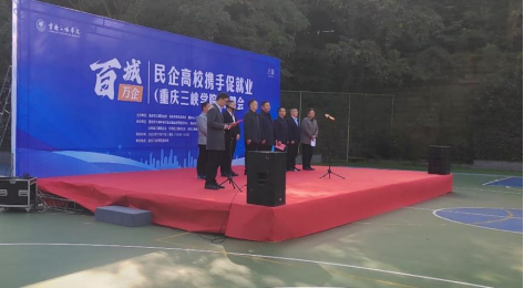 开幕式伊始,郭董事长对开幕式致辞,正式的宣布双选会的开始,点燃了同学们炽烈的激情,唤醒了同学们蓬勃的朝气。然后是重庆鼎创智能装备有限公司董事长李雄峰介绍了本次双选会旨在帮助各大企业寻找合适的人才,同时也为广大老员工提供了就业的平台。接着人力社保局的龚涛主任对本次活动进行了总结,他说道,此次双选会有利于同学们更高效,更高质量的就业发展。最后各位嘉宾也对毕业年级员工送上了美好祝愿,希冀同学们能在未来人生道路上前程似锦,大展宏图。