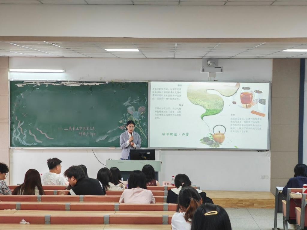 初赛经过研究生评委团的选拔,本次活动共有八个本科生队伍进入决赛,分为“传薪”项目计划组四个队伍与“传薪”产品设计组四个队伍。活动伊始,由“传薪”项目计划组按照顺序进行PPT展示,讲解自己的创业计划与创新项目,介绍其项目中他们如何将传统文化与进行创新技术巧妙结合,并根据项目实际情况运用不同的运营方式,开拓市场;“传薪”项目计划组讲解结束后,由“传薪”产品设计组进行PPT展示,针对产品设计图进行讲解;在答辩环节,评委们根据项目和产品的实际情况进行提问,并针对一些漏洞提出建议。等待结果的同时,由2022级旅游管理专硕彭湛礼同学分享了一些优秀智慧农业案例,并指出,做项目一定要注意脚踏实地。