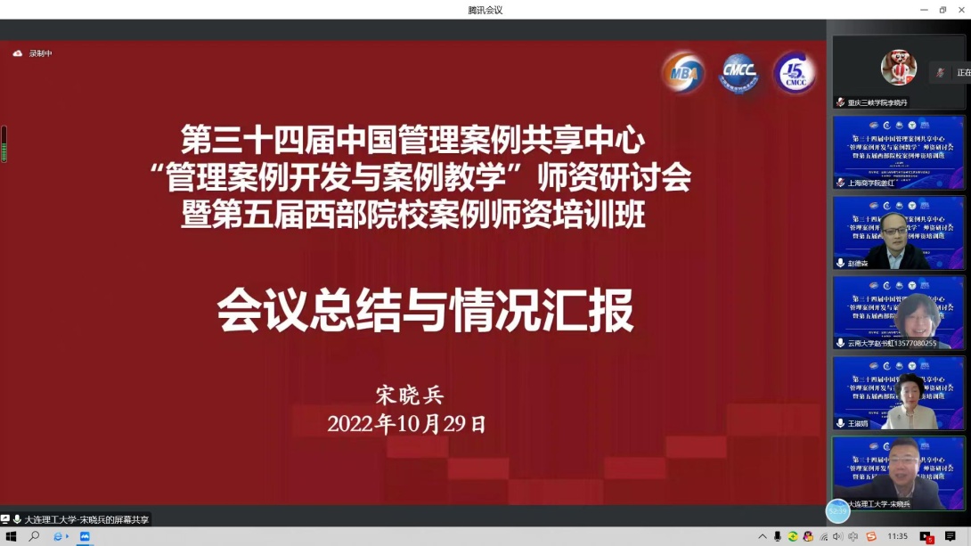 2022 年10月28-29日,公司组织MTA教师陈国毅、李晓丹、郑亚章线上参加第三十四届中国管理案例共享中心“管理案例开发与案例教学”团队研讨会暨第五届西部院校案例团队培训班。